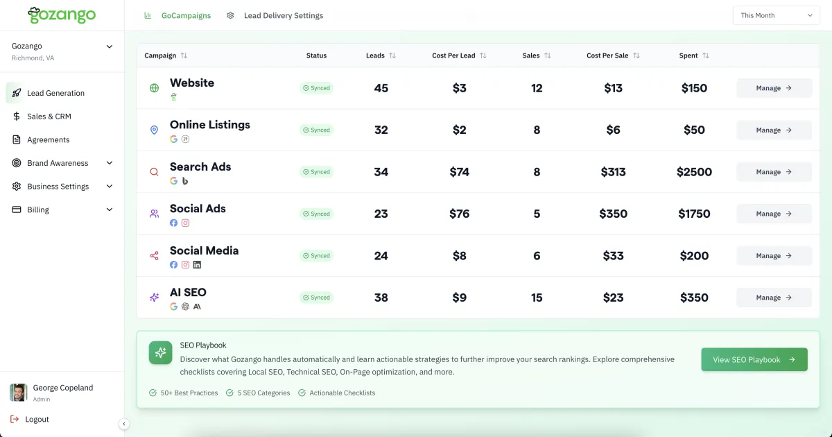 *Individual account results will vary based on your specific services, target audiences, location, competition, platforms, budgets, and Gozango features utilized.